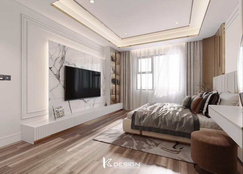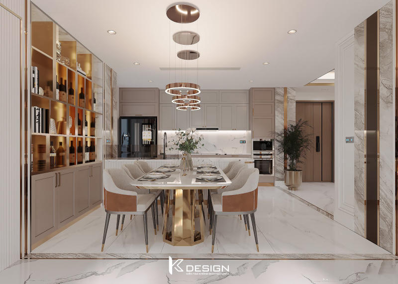 Lấy cảm hứng từ vẻ đẹp của ánh trăng, không gian sống tại đây là kết hợp giữa nét cổ điển và sự hiện đại. Được hòa quyện bởi màu sắc nhẹ nhàng và ánh sáng ấm áp, căn hộ như một bản hòa nhạc dịu dàng, giúp gia chủ có những khoảnh khắc thư giãn trọn vẹn bên gia đình.